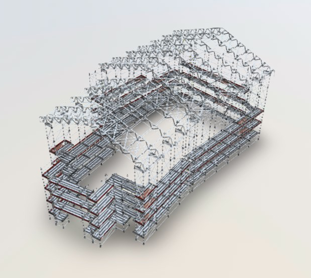 Die Layher Anwendungsingenieure planten das Fassadengerüst inklusive Einhausung mit dem Kederdach XL via LayPLAN CAD in 3D vor.