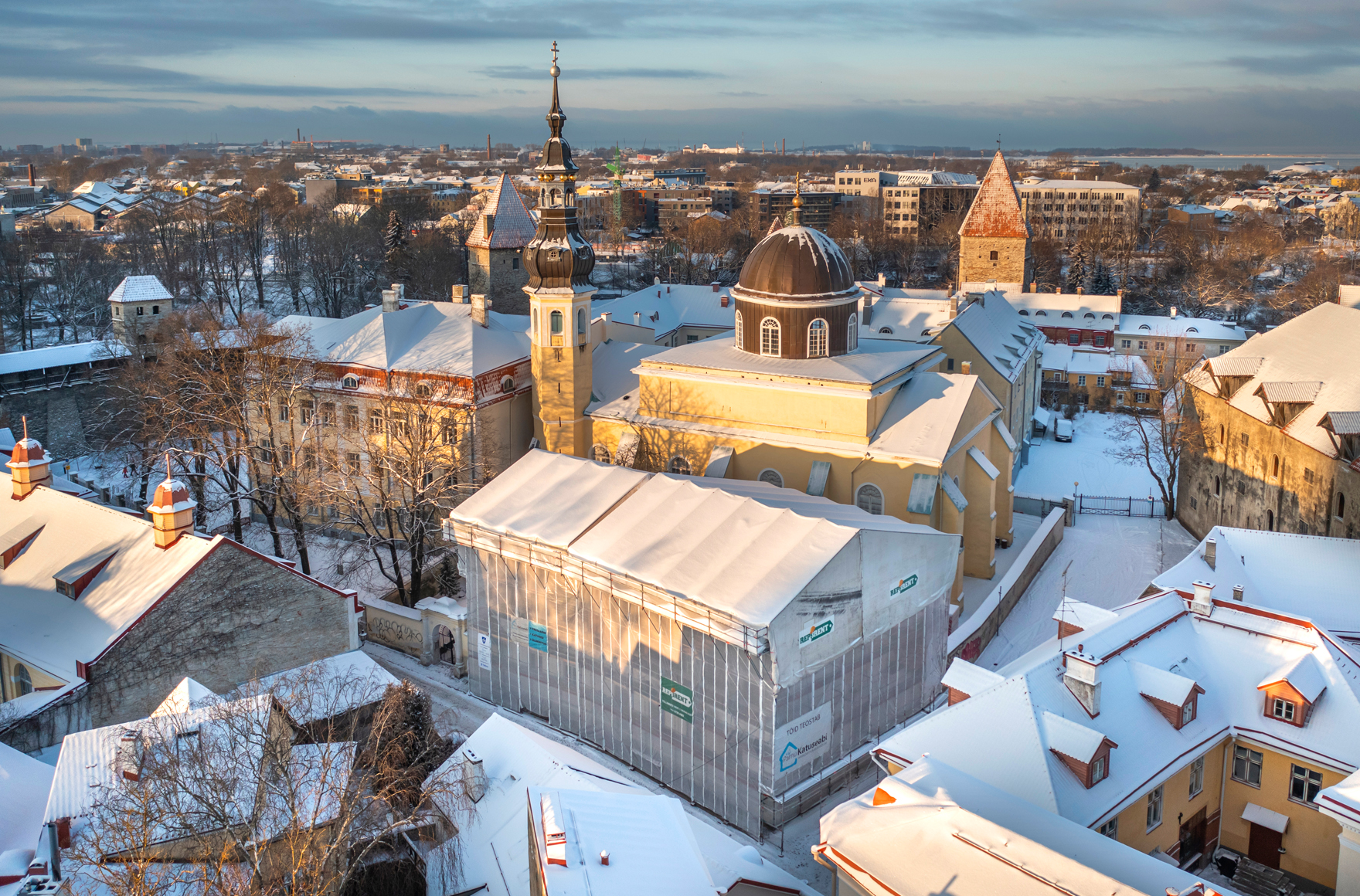 Wenn in Altstädten historische Gebäude über die Wintermonate renoviert werden müssen, ist dazu meist nicht nur ein Arbeitsgerüst notwendig, sondern auch ein Baustellenschutz – und das in guter Optik. Aktuelles Beispiel: Die Sanierung der Kirche von der Verklärung des Herrn in Tallinn. Dazu war ein flexibles Fassadengerüst gefragt, da die mittelalterliche Klosterkirche mit einer fast 300 Jahre alten barocken Ikonostase eine gebogene Form hat. Außerdem sollte die Baustelle eingehaust werden, um wetterunabhängig arbeiten zu können und gleichzeitig Passanten zu schützen: Die wirtschaftliche Lösung: Eine Kombination aus AllroundGerüst, Kederdach XL – und digitaler Vorplanung in 3D.